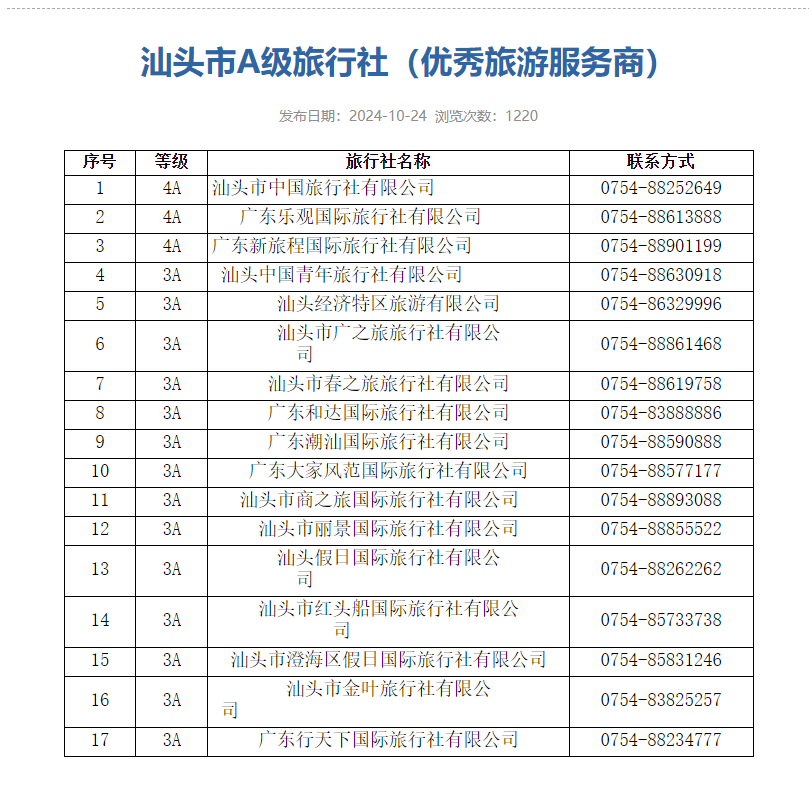 汕頭市A級旅行社(優(yōu)秀旅游服務(wù)商)