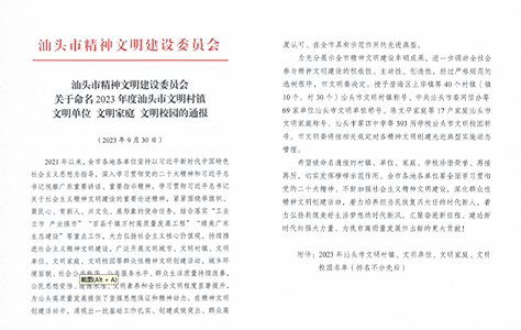 2023年12月14日報道:喜報丨我新旅程榮獲汕頭市精神文明建設委員會2023年度文明單位